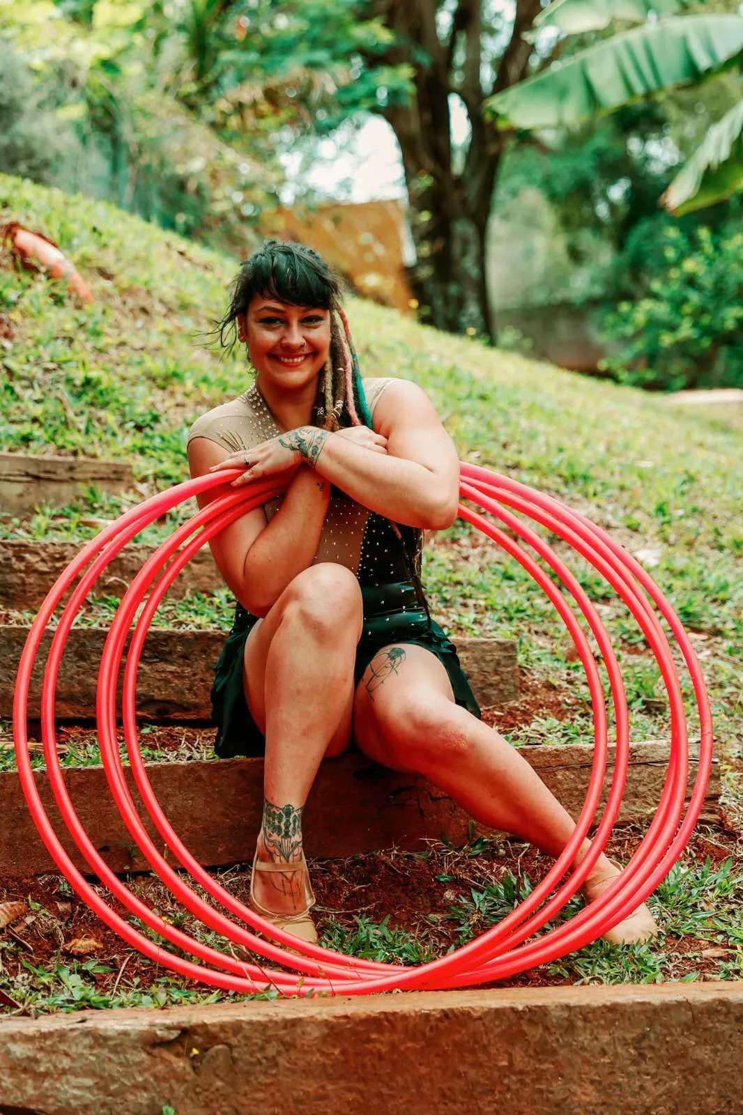 Depois de criança, reencontrei o bambolê como adulta em 2016, onde um bambolê de mangueira quebrado, em uma Fazenda no Uruguai durante um mochilão, transformou minha vida. Desde então, aprendi por meio de encontros de circo e de forma autodidata por meio de tutoriais de internet tudo o que sei sobre bambolê. Encantada com os benefícios, comecei a me dedicar a esse universo e aprofundei o meu estudo ao desenvolver meu TCC de licenciatura sobre a temática, chamado: